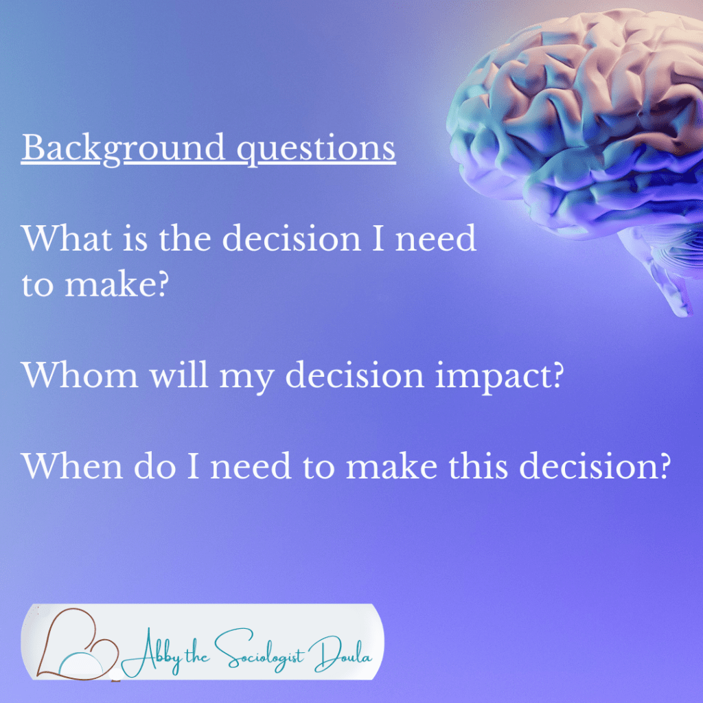 How do I make a decision? Think about the background, approach, and practical questions.