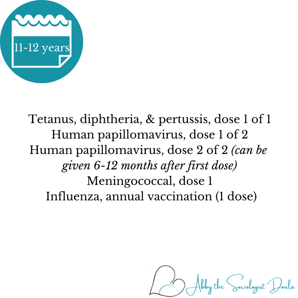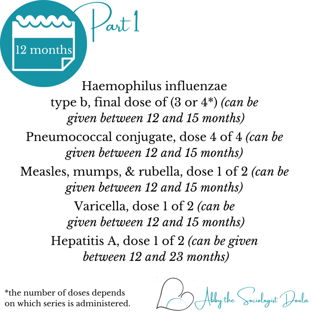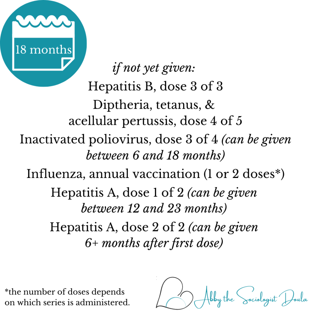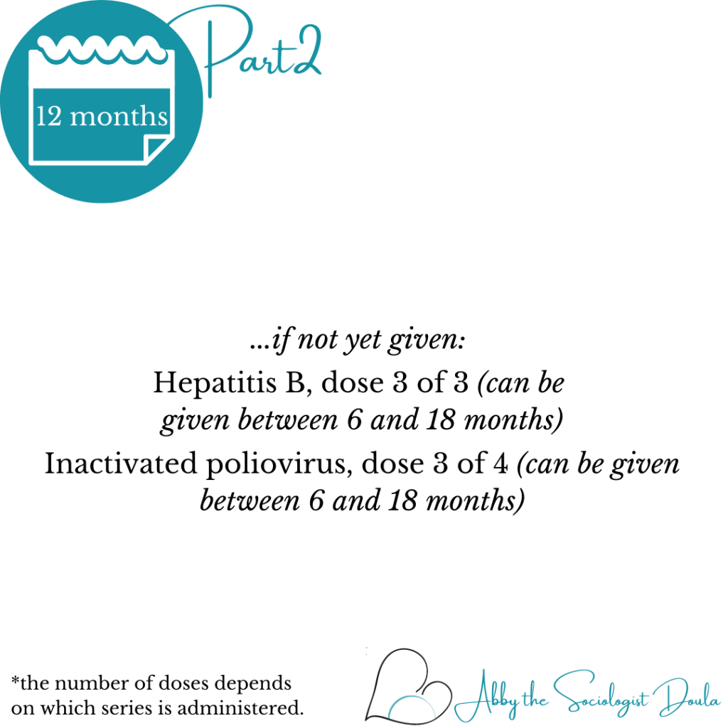 Keep in mind that these use the recommended schedule as of June 2021 for a baby with no medical conditions. Some children benefit from additional vaccines or vaccines administered sooner or later than these recommendations. These pictures are just meant to be an initial starting point for your consideration (and a handy resource if you’re running into a checkup with no idea what’s on the agenda for discussion that day). Talk to your doctor if you have questions about what vaccines or vaccine timelines you should consider for your child.
