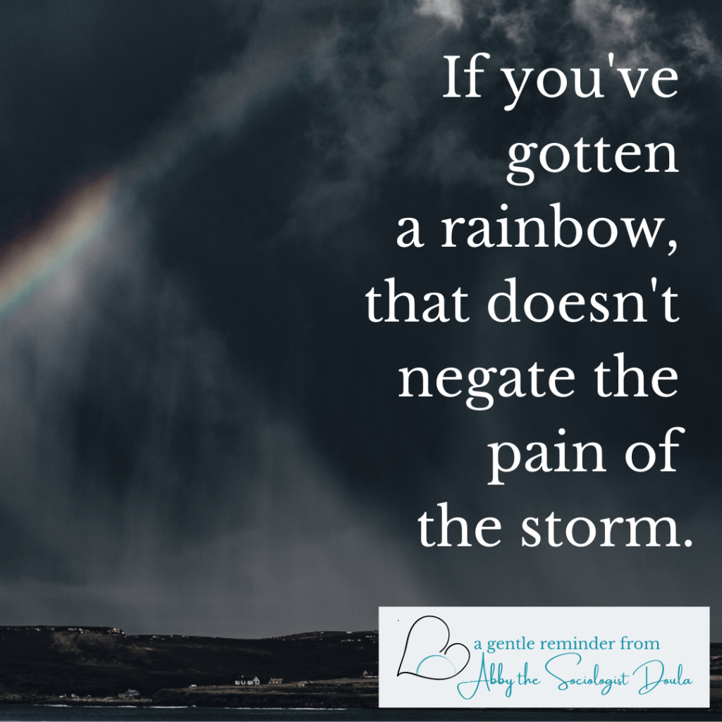 If you’ve gotten a rainbow, that doesn’t negate the pain of the storm.