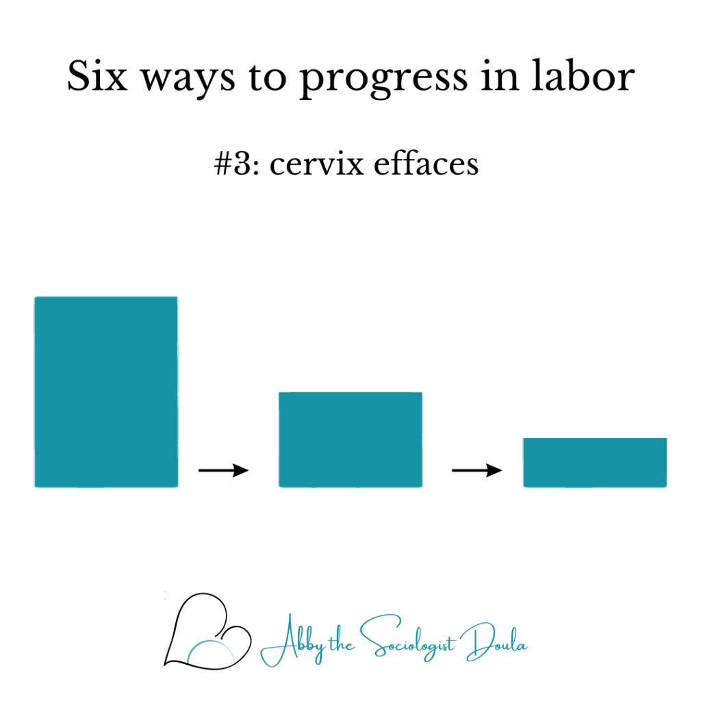 This is the one you’ve probably heard the most about. After months of staying closed to protect baby from outside elements, the cervix gets wider in order to accomodate baby coming through. This is described on a scale of centimeters – from 0 to complete (around 10-ish, but that can be different for different babies! Complete just means that the cervix has dilated so much that baby’s head can slip through it).