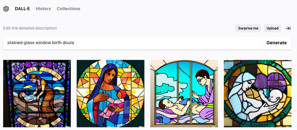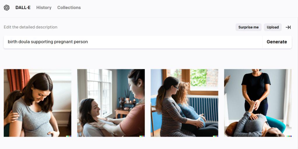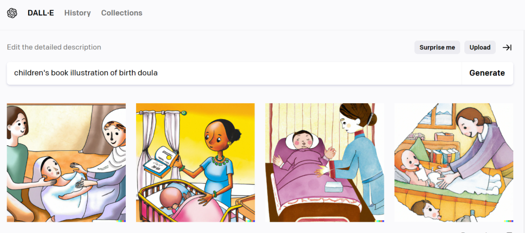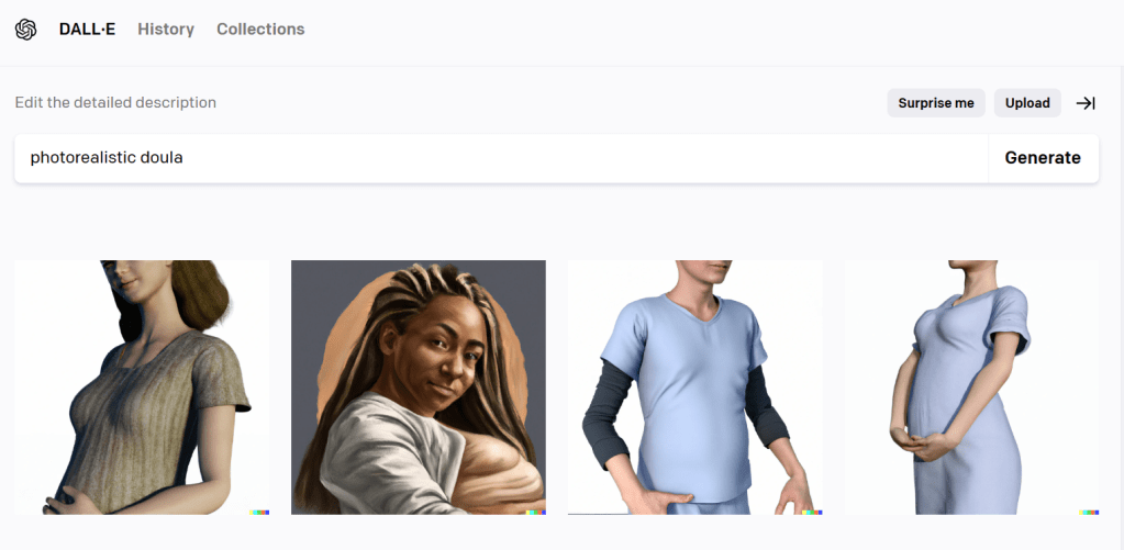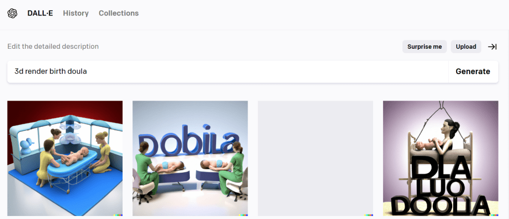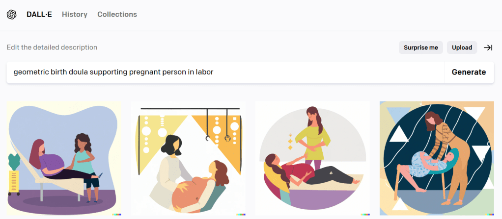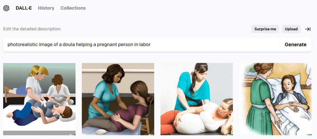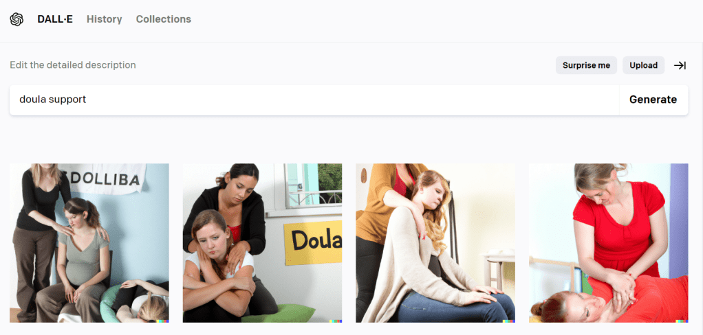 It got weirder. And I got kind of worried about AI’s mental state when I looked up “doula support” and got these images: